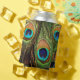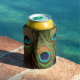 A Peacock Feathers Can Cooler with a photograph of some detailed beautiful peacock feathers.