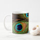 A Peacock Feathers Classic Mug with a photograph of some detailed beautiful peacock feathers.