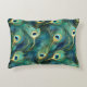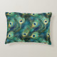 This accent throw pillow is shown in a lovely peacock feathers print.