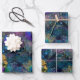 Peacock Elegant Feathers Glitter Pink for Decoupage or Gift Wrapping. There are 3 sheets, one image is reversed right to left to use for cabinet doors etc. (some small handwriting elements will be backwards). A bright and colourful fantasy style vintage and modern art painting of elegant Peacocks in bold shades over shimmering peacock coloured background with gold glitter Peacock feathers, flowers, twinkling star backdrop. Art graphically designed by internationally licensed artist and designer, Audrey Jeanne Roberts. Copyright.