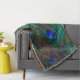 Peacock Feathers Etching Style Throw Blanket