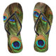 A pair of Peacock Feathers Flip Flops with a photograph of some detailed beautiful peacock feathers. Walk with style.