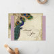 PAPER SELECTION: This is shown on "basic paper", another great choice would be "metallic ice" which is a clean white, pearlized shimmery surface. It would also be beautiful on "Champagne Metallic" linen, felt or any of the other choices. COLOR PALETTE: lilac, tan, cream royal blue, green, and rust. DESIGN: This antique vintage inspired Thank You Note flat card is from the matching wedding collection, and has a complete ensemble of products and can be created in several colorways. If you would like it to match your wedding let us know via email and we'll be happy to assist you. This design consists of a stately peacock on a tree branch vintage art element layered three vintage peacock feathers and over an angel etching, swirls, antique handwriting, hand painted lace overlaid on parchment and a beautiful original art damask pattern. There is a handlettered calligraphy font text on the front with lots of swirls and flourishes. The lavendar background colour can be changed to match your wedding.