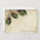 PAPER SELECTION: This is shown on "basic paper", another great choice would be "metallic ice" which is a clean white, pearlized shimmery surface. It would also be beautiful on "Champagne Metallic" linen, felt or any of the other choices. COLOR PALETTE: taupe, tan, cream royal blue, green, and rust. DESIGN: This antique vintage inspired Thank You Note flat card is from the matching wedding collection, and has a complete ensemble of products and can be created in several colorways. If you would like it to match your wedding let us know via email and we'll be happy to assist you. This design consists of a stately peacock on a tree branch vintage art element layered three vintage peacock feathers and over an angel etching, swirls, antique handwriting, hand painted lace overlayed on parchment and a beautiful original art damask pattern. The taupe and cream background colour can be changed to match your wedding.