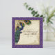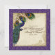 PAPER SELECTION: This is shown on "basic paper", another great choice would be "metallic ice" which is a clean white, pearlized shimmery surface. It would also be beautiful on "Champagne Metallic" linen, felt or any of the other choices. COLOR PALETTE: purple, tan, cream royal blue, green, and rust. DESIGN: This antique vintage inspired wedding collection has a complete ensemble of products and can be created in several colorways. If you would like it to match your wedding let us know via email and we'll be happy to assist you. This design consists of a stately peacock on a tree branch vintage art element layered three peacock feathers and over an angel etching, swirls, antique handwriting, hand painted lace overlayed parchment and a beautiful original art damask pattern. The background colour can be changed to match your wedding.