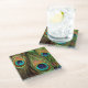 A beautiful Peacock Feathers Glass Coaster with a photograph of some detailed beautiful peacock feathers.
