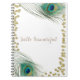 Peacock Feathers & Gold Boho Glam Elegant Notebook