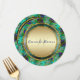 Peacock feathers design featuring the vibrant peacock colours in a swirl seamless pattern. Makes this into a stunning round Special Event / Wedding Menu - that would look great placed on the wedding guest plates. Theme : Bright vibrant shades of green, indigo blue, gold • ♦ • Customisable double sided wedding reception luncheon or dinner menu with other side of card with elegant style layout for bride and groom's names, wedding dates and monogram / initials. • ♦ • Personalise with your special event info. I have added text using the curved style on both sides of this beautiful round menu to make it easy for you. If you don't need it, just delete (leave the space blank).
