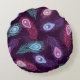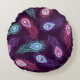 Peacock Feathers: Hand Drawn Vintage. Round Cushion