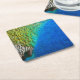 Peacock Feathers IV Colourful Abstract Nature Square Paper Coaster