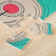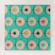 Stylised peacock feathers shine in blue and red op art. Mesmerising vintage allure!