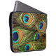 A Peacock Feathers Laptop Sleeve with a photograph of some detailed beautiful peacock feathers.