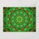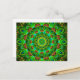 Beautiful green mandala with blue and pink accents and peacock feather shapes.