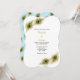 Peacock Feathers on Light Blue & White Wedding Invitation
