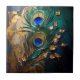 Peacock feathers pearl leaf faux gold foil marbled ceramic tile