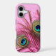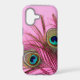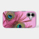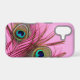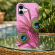 Beautiful, pink iPhone case with colourful peacock feathers close-up. Gives protection and lovely decoration for your smartphone, but also makes a great gift for trendy girls.