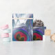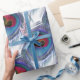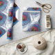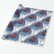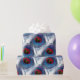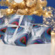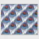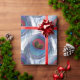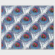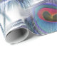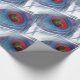 Stylish wrapping paper with beautiful blue toned peacock feathers pattern over white background.