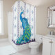 Original drawing by Sandra Gale, featuring a lovely and life-like peacock in front of purple floral patterns and fluer-de-lis accents. Great design for any powder room or bath.