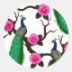 Peacock birds perching on branches and pink camellia flowers, this pattern is hand drawn in Photoshop.
