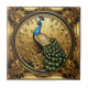 Peacock gold and black ornamental frame ceramic tile