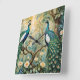 Peacock Golden Teal Floral Jungle Square Wall Clock