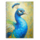 Transform your note-taking with this magnificent peacock notebook featuring rich impressionist brushwork and stunning vibrant colors. The majestic blue peacock with its iconic crown feathers and eye-spotted tail plumage comes alive with textured oil painting style in brilliant blues, emerald greens, and golden yellows on every cover.