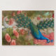 Peacock in Apricot Rose Garden Jigsaw Puzzle