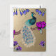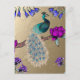 A colourful peacock is perched on a branch adorned with vibrant flowers. The background features a gold tone with textured details, enhancing the overall elegance of the scene.