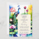 Peacock lotus flowers wedding editable template invitation instant digital download, watercolor pink lotus pond with a beautiful peacock wedding invitation instant download