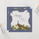Peacock Magnolia Floral Swirl Damask Wedding Navy Invitation
