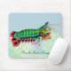 Original fine art painting of a colourful Peacock Mantis Shrimp from coral reefs of the Indo Pacific by artist Carolyn McFann of Two Purring Cats Studio printed on a quality and customisable computer mousepad for saltwater aquarium and scuba diving fans.