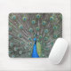 A mousepad with a beautiful Indian Blue Peacock, captured with tail plumage on full display.