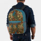 This Asian inspired backpack features lovely teal and blue peacocks with green and orange plumes and feathers, with lovely purple plum coloured flowers and lanterns in a lovely old tree. The trim is in a coordinating peacock teal colour, with your optional initials in gold on the side. Either replace the initial with your own or delete if you prefer not to have initials. This would make a nice gift for a student or a great bag for hauling your books, crafts, or gym clothes wherever you travel.