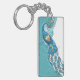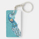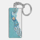Peacock on Teal Illustration Key Ring