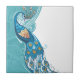 Peacock on Teal Illustration Tile