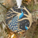 Add a touch of elegance and enchantment to your holiday décor with this beautifully crafted acrylic ornament. Featuring a stylised peacock perched on a golden tree, this design boasts intricate gold and blue detailing that shines against a dark background. The peacock's flowing tail feathers cascade like liquid gold, creating a captivating scene, while smaller peacocks below add a whimsical charm. Perfect for elevating your tree or home décor, this ornament exudes sophistication and beauty, making it a standout piece for the season. Ideal for gifting or adding a luxurious touch to your own collection.