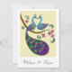 A loving pair of peacock and his peahen are found kissing on top of a flowering branch forming a heart shape with their arching necks! The design is done in vibrant colours in rich Indian style with swirls and paisley leaves. Matching wedding invite, save-the-Date, RSVP, postage etc are coming soon. The artist (Krishna Sadhu) custom-makes matching peacock-peahen cake toppers in her etsy store at: http://www.etsy.com/shop/krishnasadhu