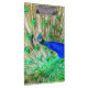This design features an image of a beautiful peacock with a bright blue body and colorful plumage. The birds are native to the Indian subcontinent and Southeast Asia; there is also one African species, the Congo peafowl. They are well known for their loud calls and extravagant plumage.