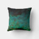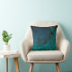 A throw pillow featuring the beautiful green, blue and turquoise filaments of a peacock's plumage