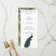 This elegant menu is perfect for any sit down dinner. It features a peacock at the bottom of the front and a photograph of colourful peacock feathers on the back. All text is customisable to suit your menu needs.