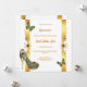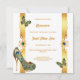 A beautiful, vibrant and luxurious design against a stark white background on which vertical faux gold bands appear with decorative golden swirls and peacock feathers. Small butterflies are flitting around and a stunning golden stilleto shoe adorned with peacock feathers appears in the bottom left corner. This graphic may be deleted if not required. Faux gold text templates appear down the middle of the 5x7 invitation and are fully customizable. The back has the same design, and additional templates for extra information you may want your guests and family to know. If not required, delete the wording to leave the back with the design only. This stylish, glam, elegant and traditional design is ideal for any 15th birthday Quinceañera or special birthday milestone celebration.