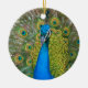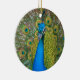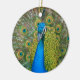 With dramatic and brilliantly coloured tail feathers, the beautiful showy peacock preens and struts and shakes his tail to attract the much more plain-coloured pea-hen for mating. The patterns and designs on the brightly coloured blue, green and gold feathers are believed in some cultures to represent the "evil eye" of bad luck, but in others, they symbolise good luck and healing.