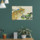 Peacock Standing Wrapped Canvas Comes with a beautiful peacock standing on a tree branch and the peacock is yellow and blue in color .this is a beautiful photo.on this poster