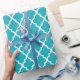Peacock Teal Quatrefoil Tiles Pattern Wrapping Paper
