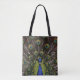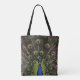 Tote Bag designed with a photo of a beautiful peacock and his feathers.