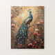 Peacock with Blush Pink Roses Painting Jigsaw Puzzle