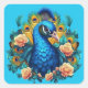 Peacock With Peach Roses Square Sticker