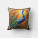 A peacock stands proudly, showcasing its colourful plumage against a warm, golden background, surrounded by intricate details reflecting its natural beauty.
