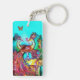 PEACOCKS IN LOVE MONOGRAM red teal blue green Key Ring
