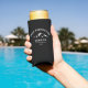 Peak Perfection, black, mountain ski / snowboard resort crest can cooler. Personalise with the year of your ski /snowboard trip, resort name and location. Perfect for a group destination winter resort trip or as a gift to remember a past trip. Designed to match our Peak Perfection Crest Collection.